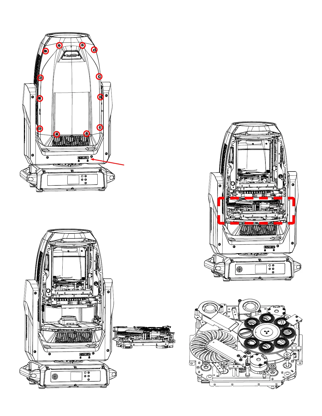Locate the Rotating Gobo Wheel Assembly Module, remove