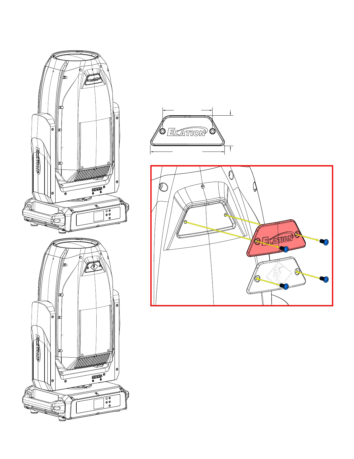 Locate and remove the existing Elation Logo Plate using