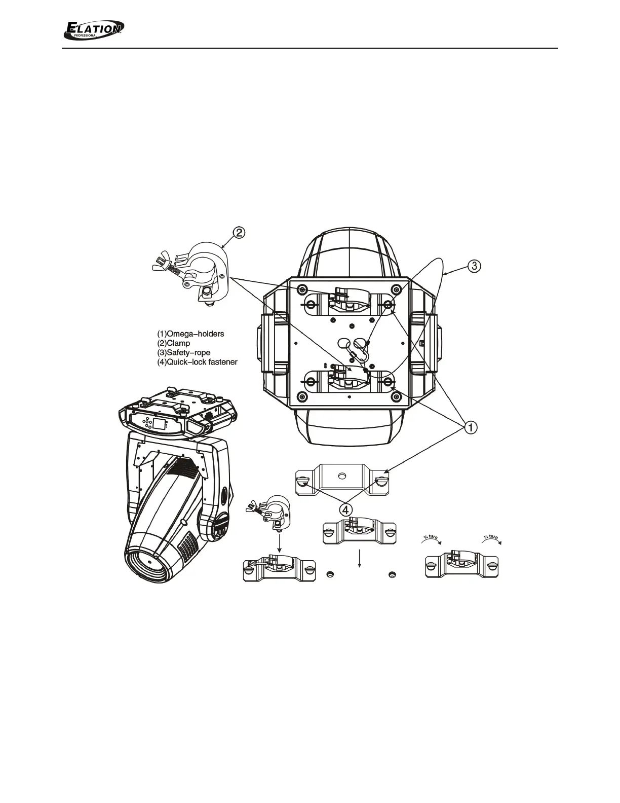 cable rigging point in one unit (see the illustration below). When mounting this fixture