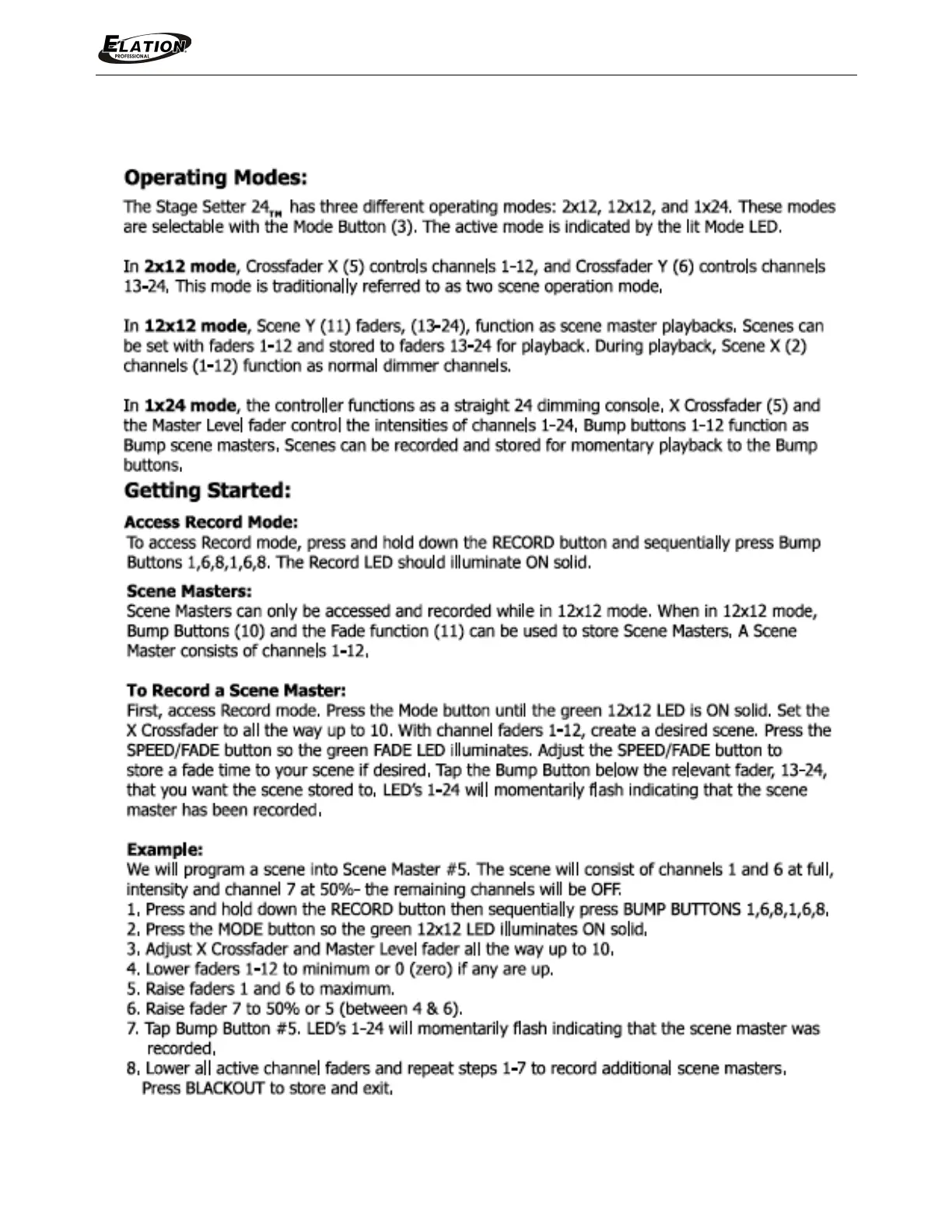 Bekijk gratis de handleiding van Elation Stage Setter 24, stel vragen en lees de antwoorden op veelvoorkomende problemen, of gebruik onze assistent om sneller informatie in de handleiding te vinden of uitleg te krijgen over specifieke functies.