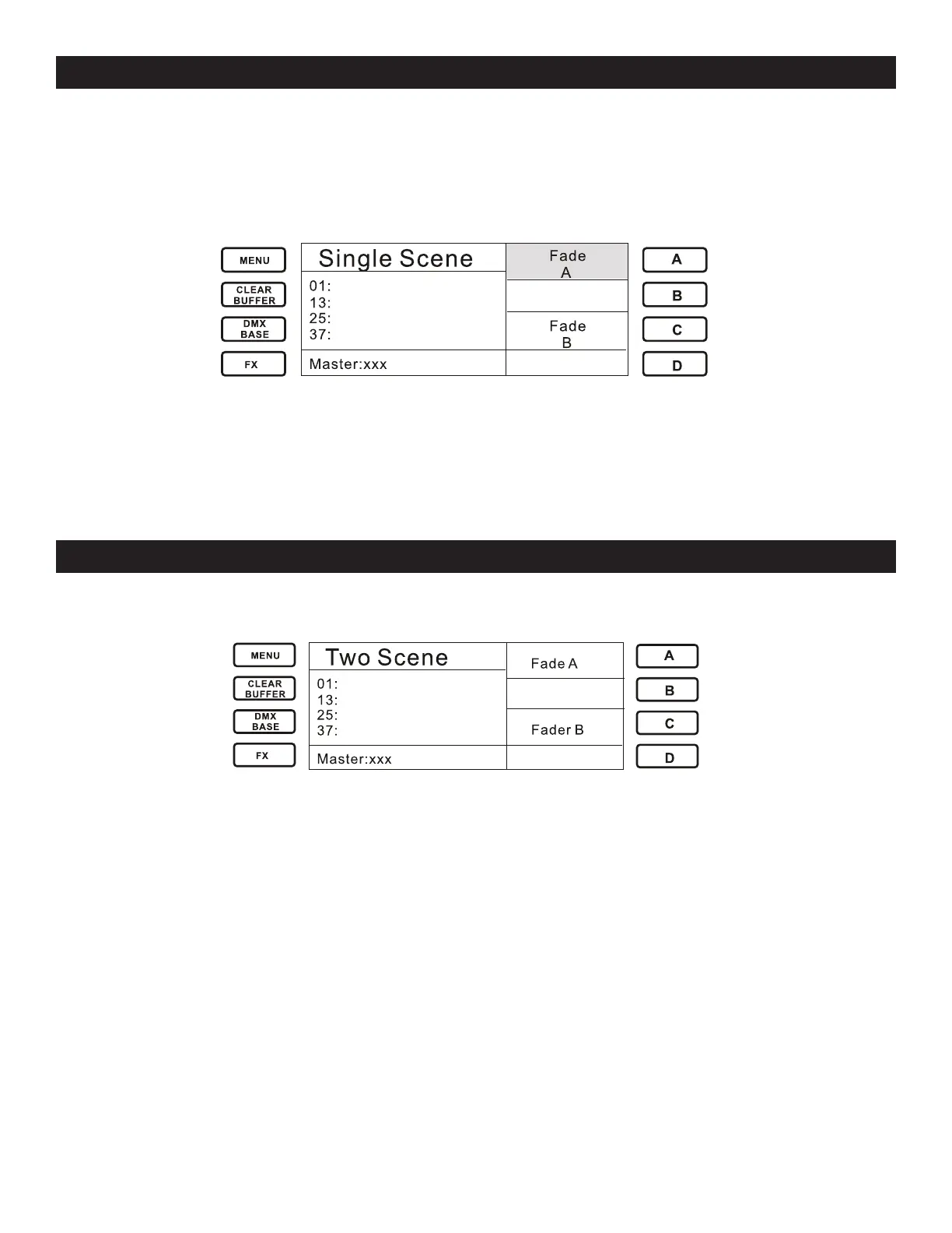When Preset A and B Faders are in the Top position, the LCD will perform Scene A and Fade out of