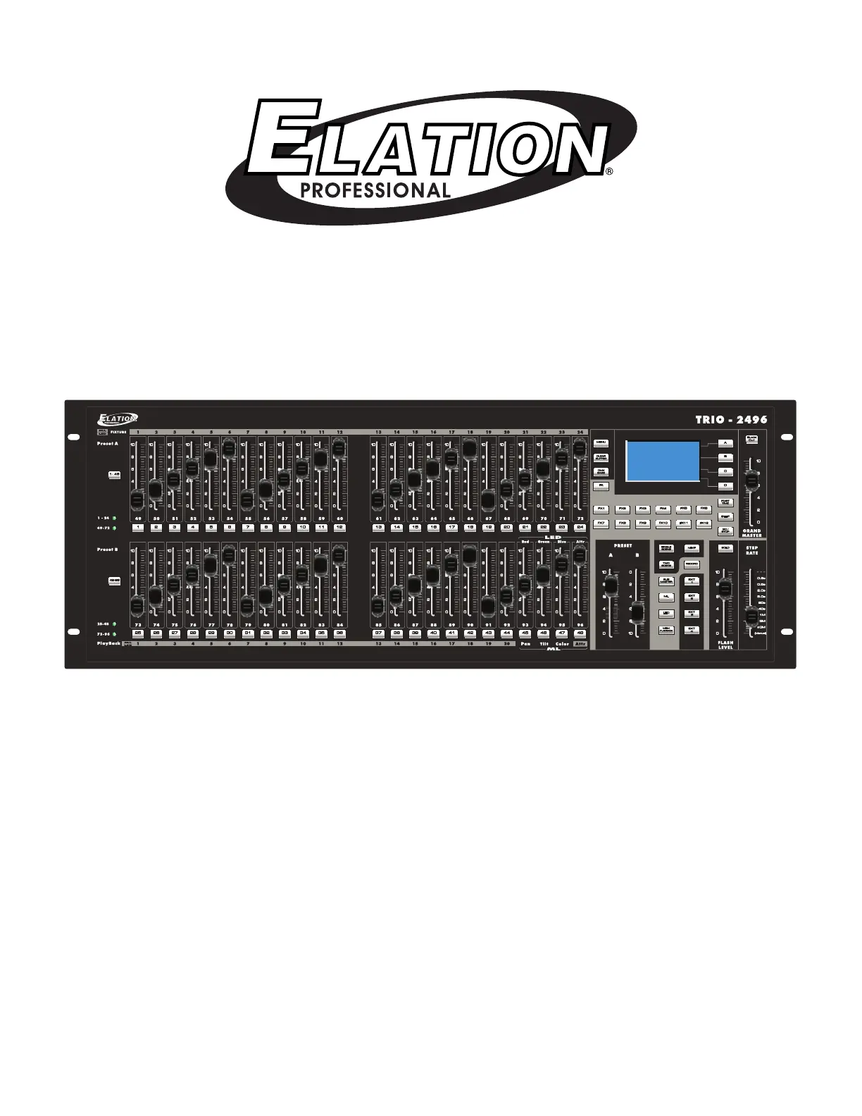 Bekijk gratis de handleiding van Elation TRIO 2496, stel vragen en lees de antwoorden op veelvoorkomende problemen, of gebruik onze assistent om sneller informatie in de handleiding te vinden of uitleg te krijgen over specifieke functies.