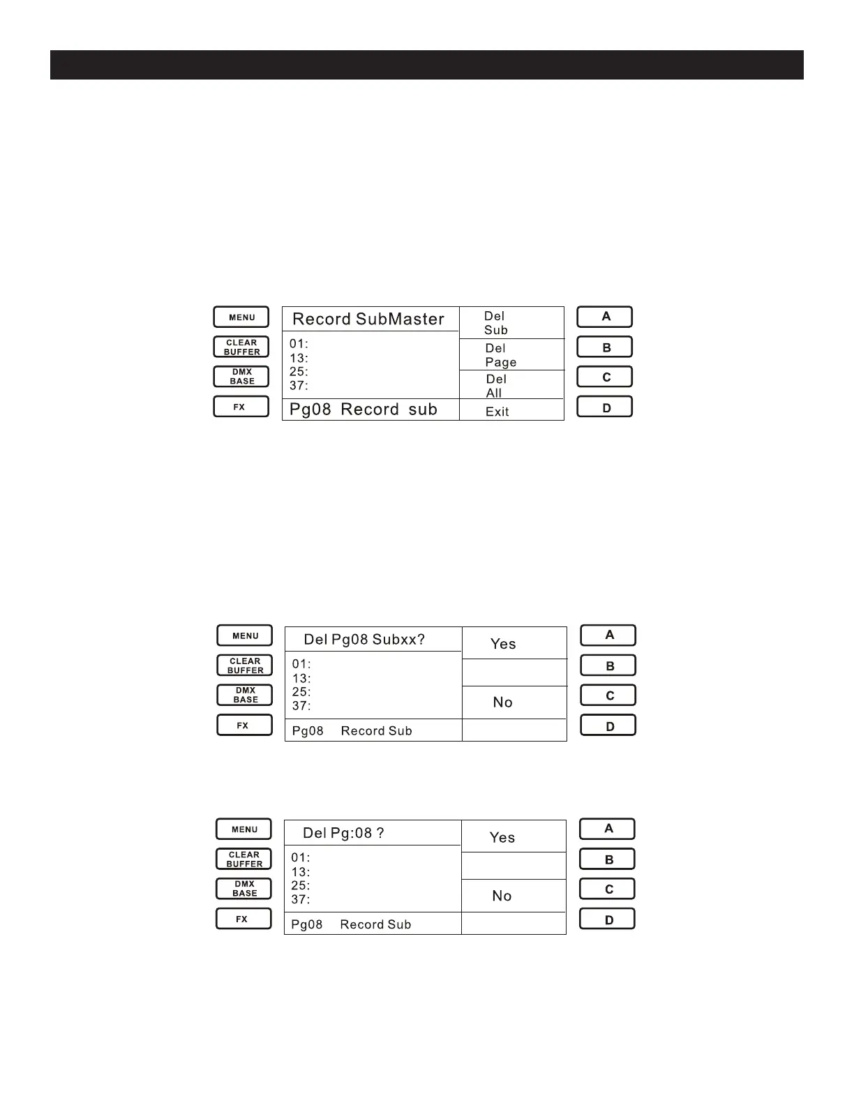 Also while in Submaster Record mode, the user may select the functions “Del Sub”, “Del Page”, or