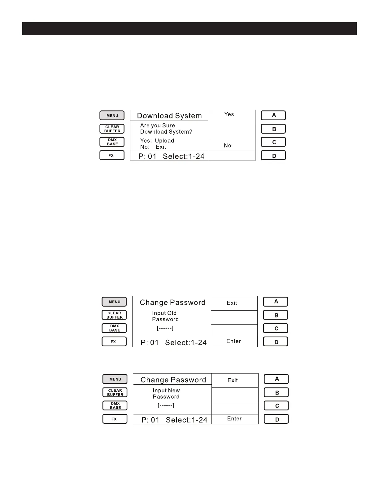 Select “Change Password”, the console LCD will prompt you to input “Old Password” (the default