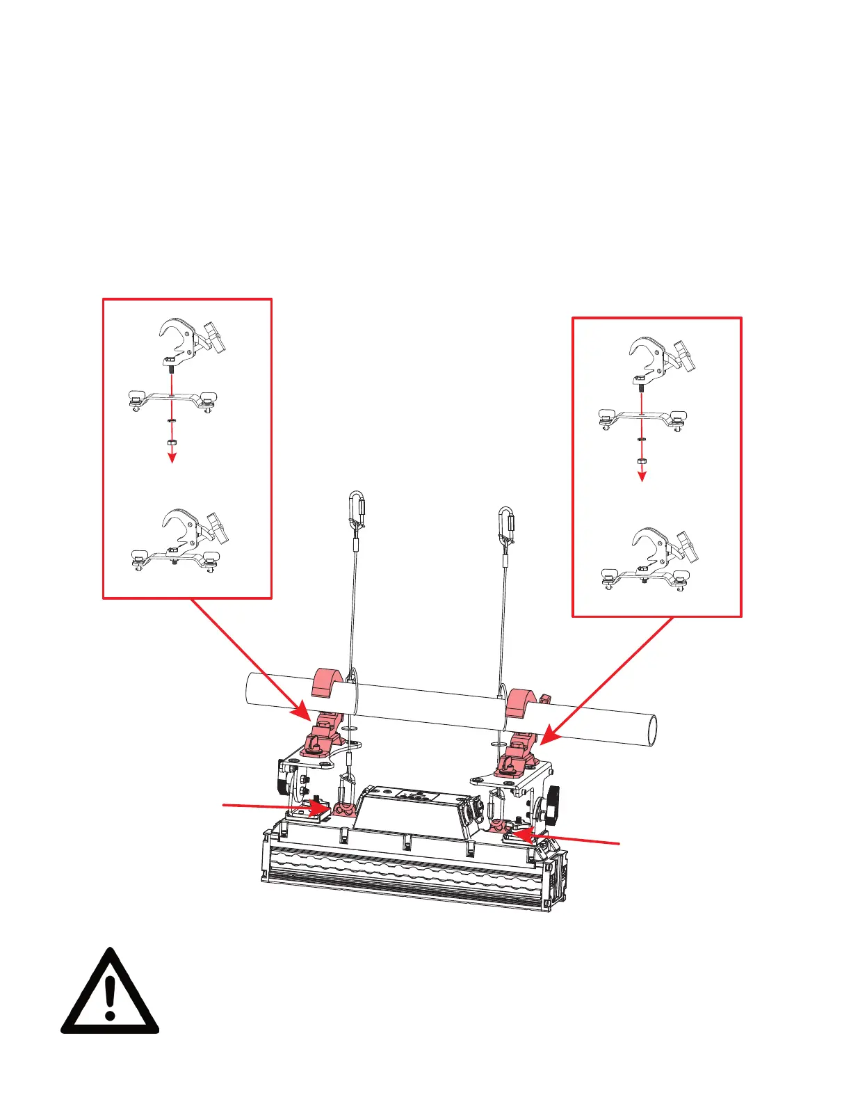 xture’s mounting brackets, and twist to secure in place. Please note that two mounting clamps