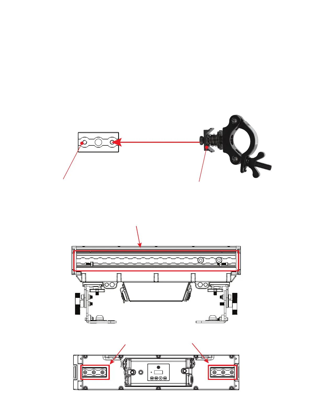 the long sides of the unit’s body, as well as on the underside where the mounting brackets