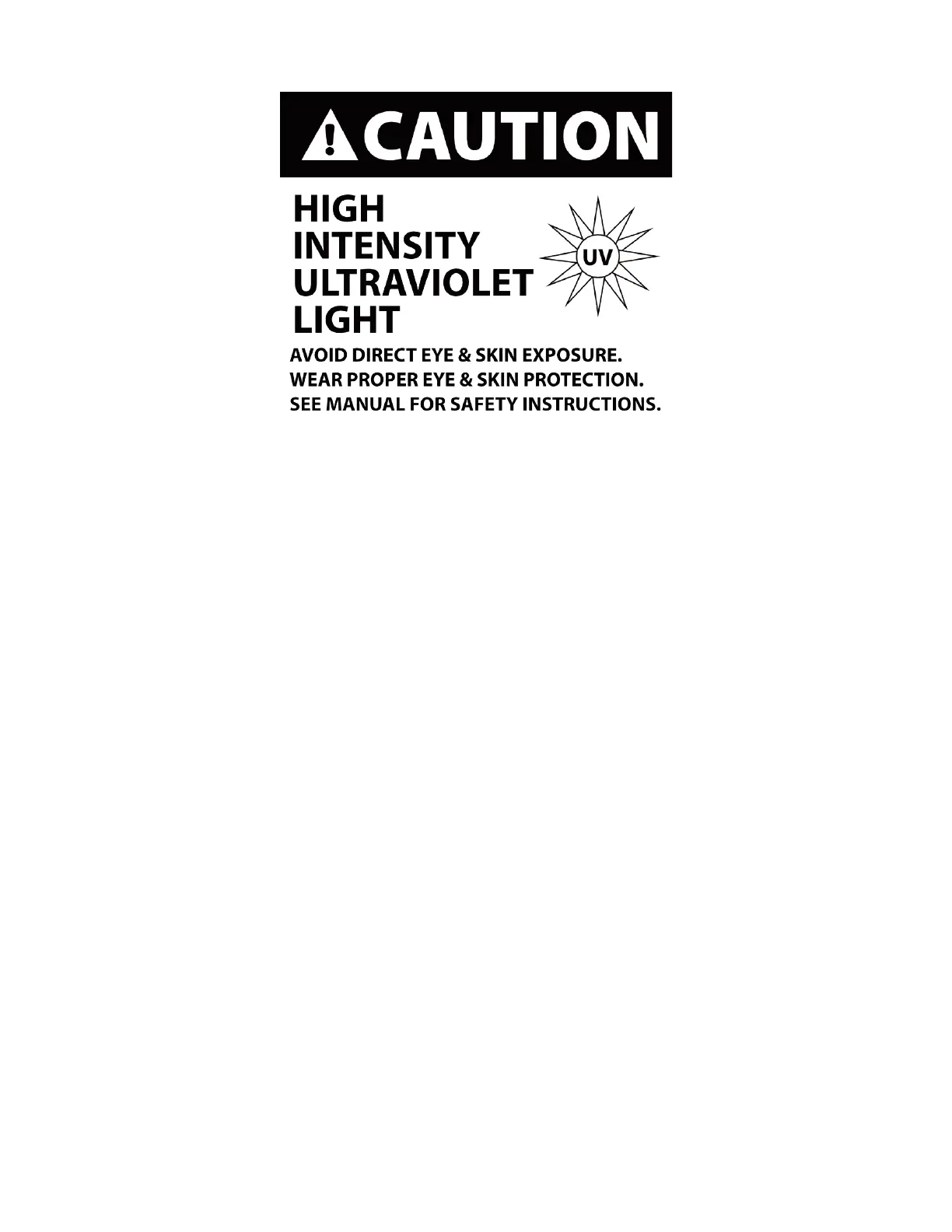 DO NOT LOOK DIRECTLY INTO THE UV LIGHT AND/OR VIEW UV LIGHT DIRECTLY WITH
