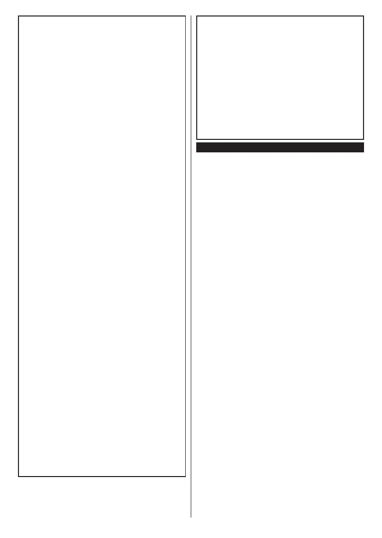 • Do not install the TV on a ceiling or on an inclined