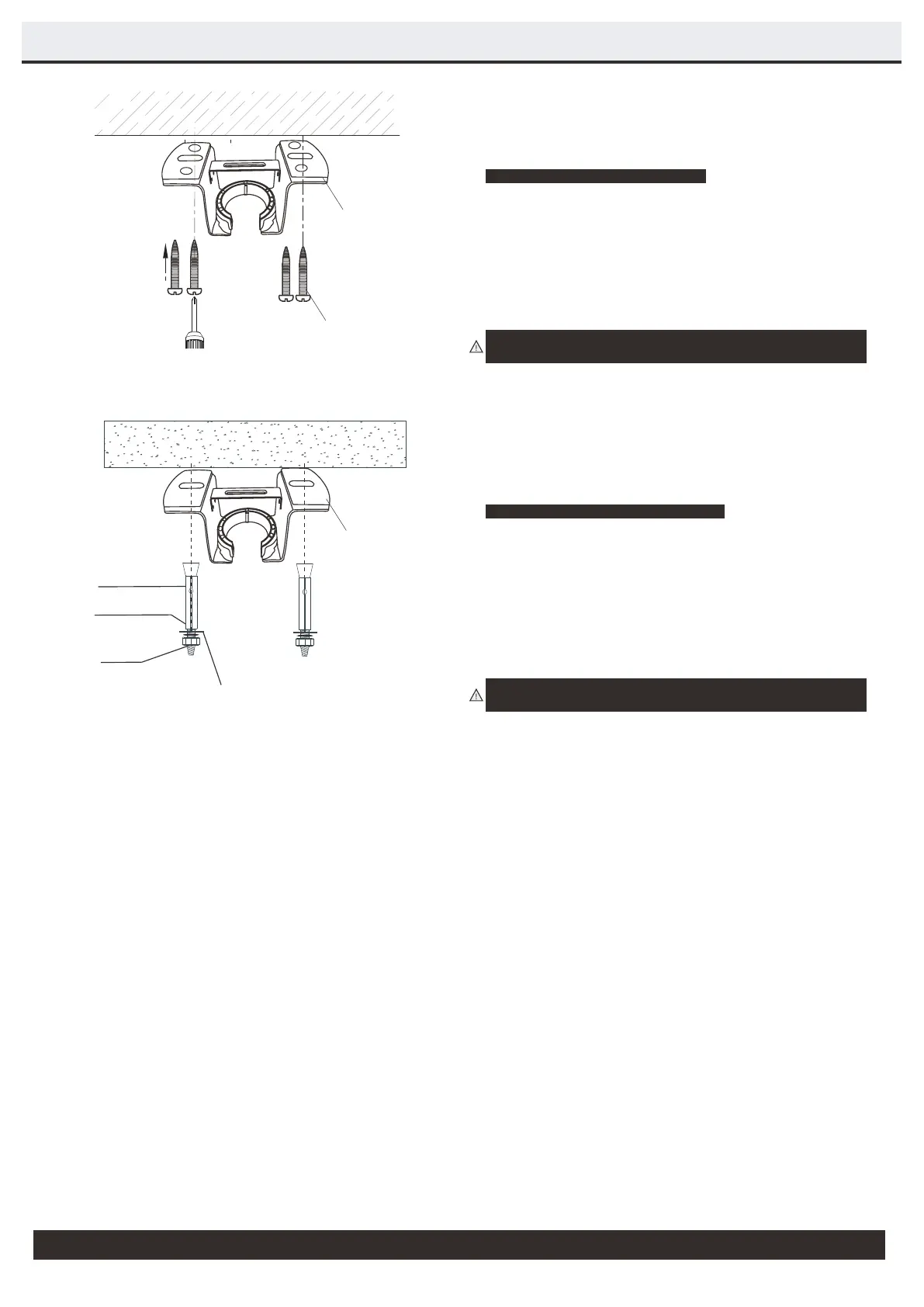 diámetro e inserte 2 pernos de expansión (B) en el techo de