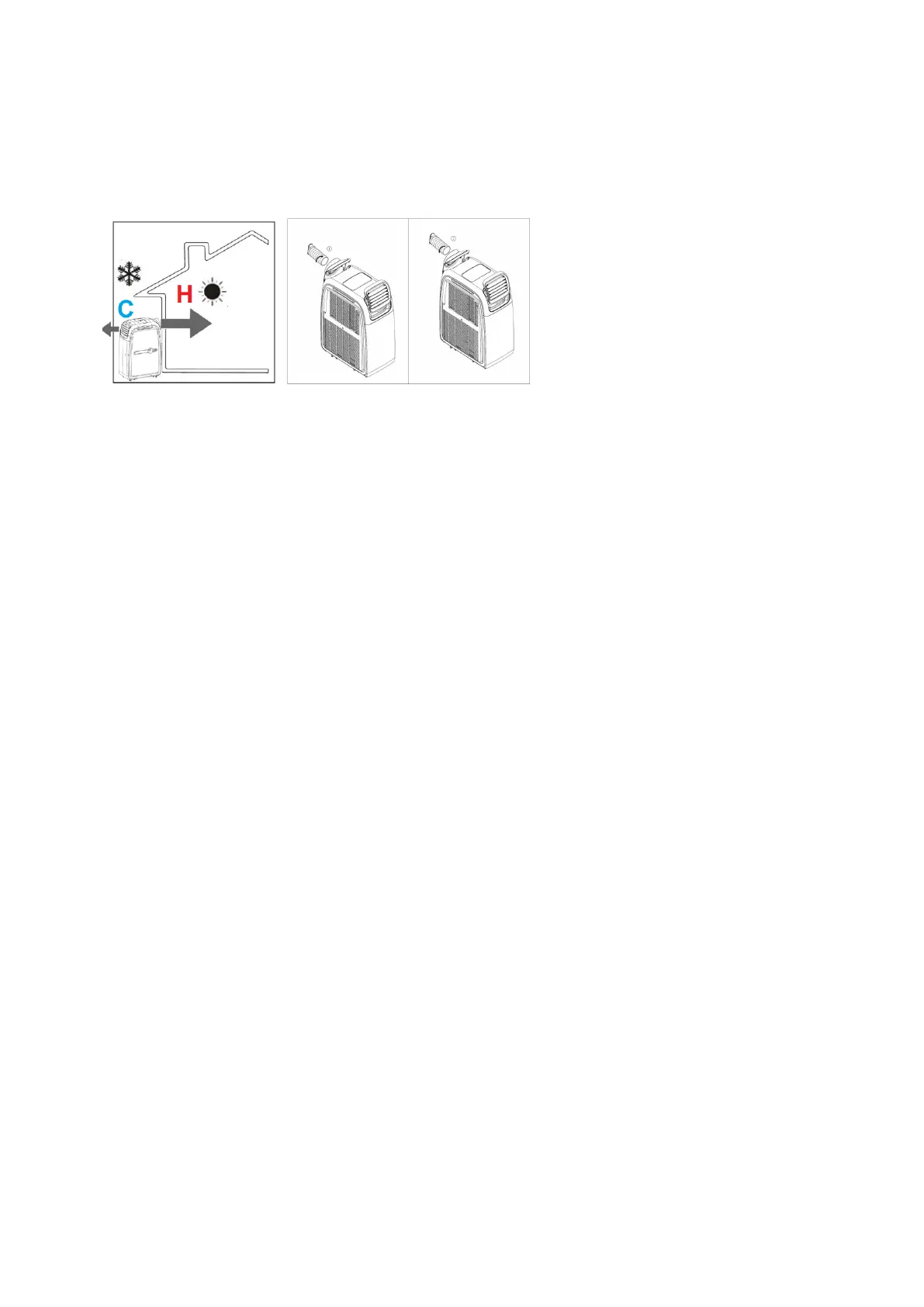 necessary. The air hose will send hot air into the room, while the front grills will expel cold air.