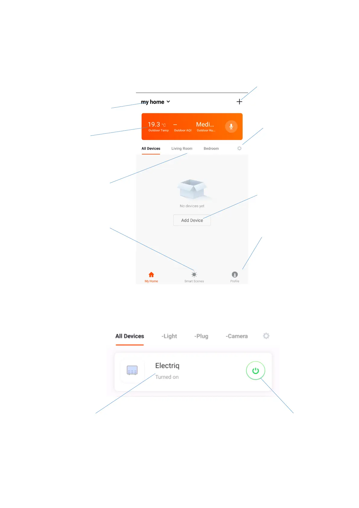 Each device has its own entry on the home screen to allow the user to either quickly turn the unit