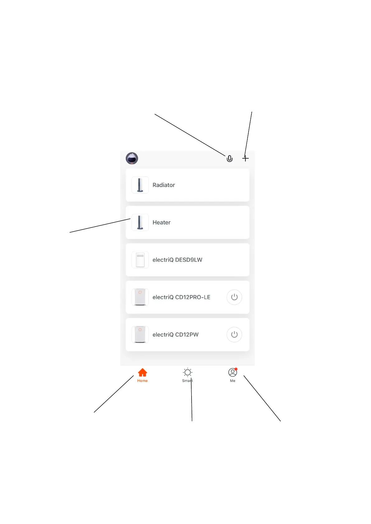 Each device has its own entry on the home screen, which allows the user to quickly turn the unit