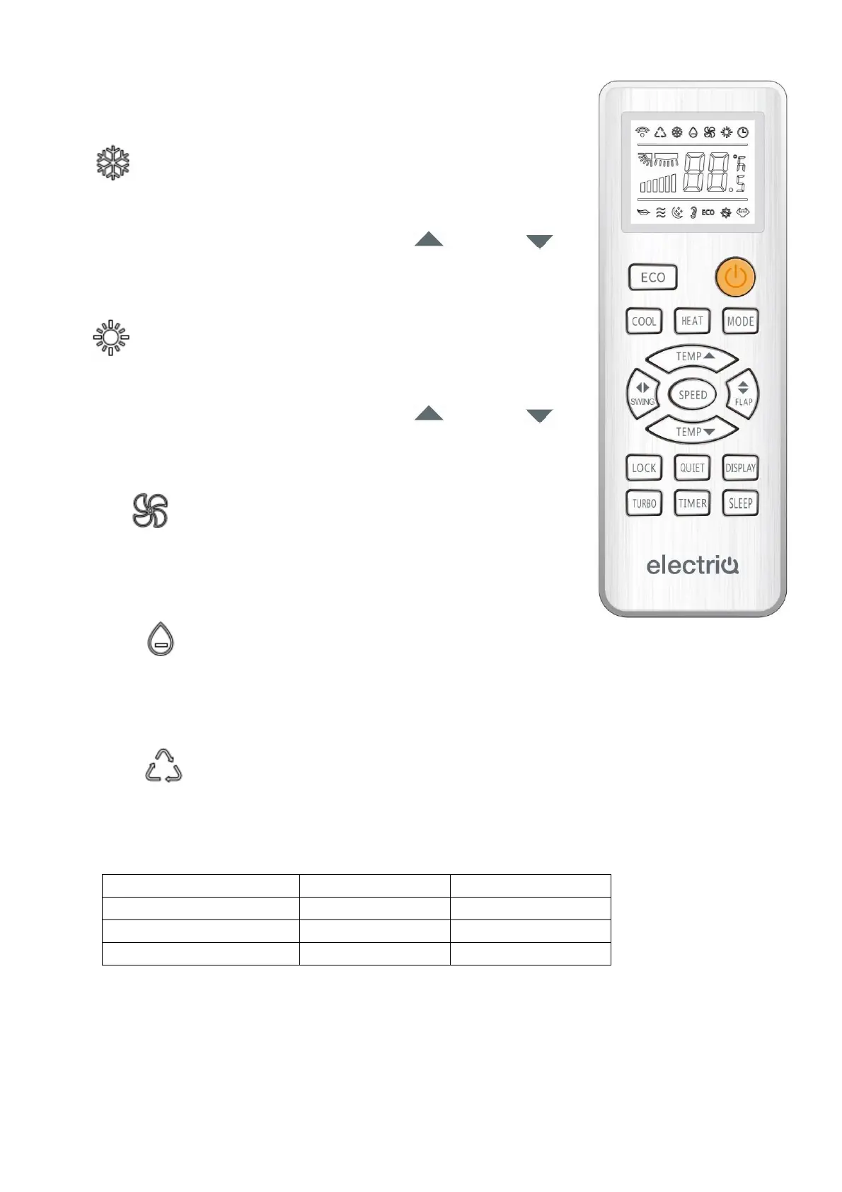 conditioner operates: cool, heat, fan or dry. It is not possible to change the temperature in this