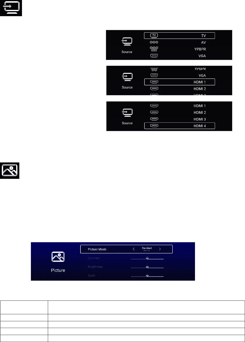 using the ◄ and ► buttons: Within this section you can make changes to the: Picture
