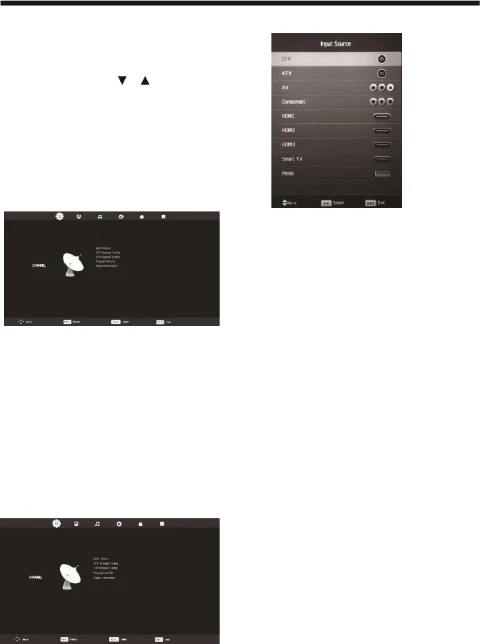 top of the screen (Channel, Picture, Sound, Time, Lock and Setup).