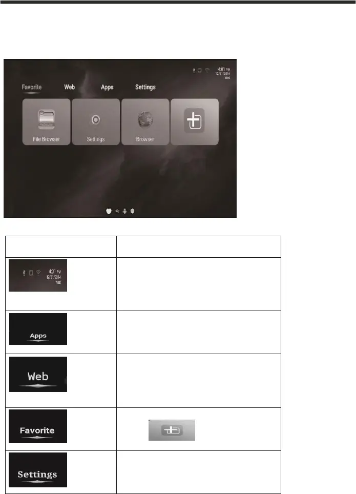 Press the arrow buttons◄ / ►to select between the headers ( Favorite, Web, Apps,