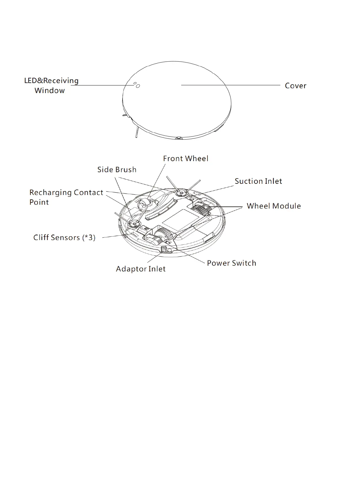 1. Side brushes and powerful suction inlet — powerful suction and full coverage of cleaning.