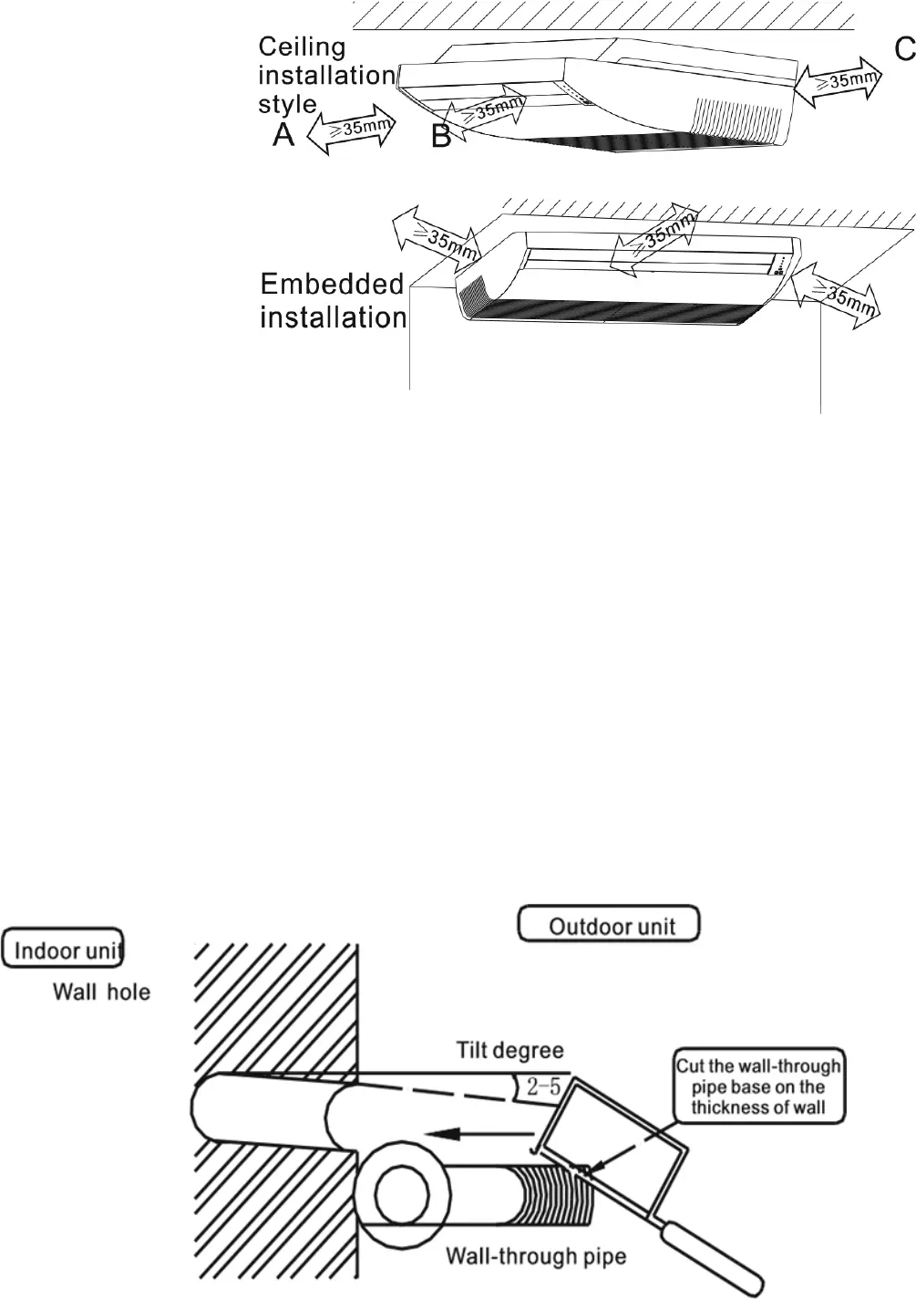 service and maintenance. The air conditioner must not be installed in a wet environment such as