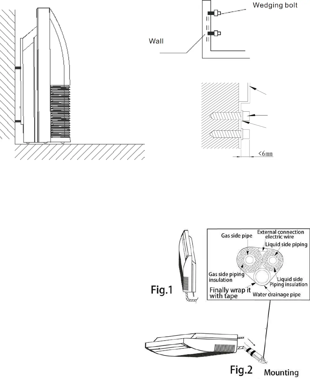 Make sure that the drain pipe is underneath the pipelines. (When the drain pipe passes the room