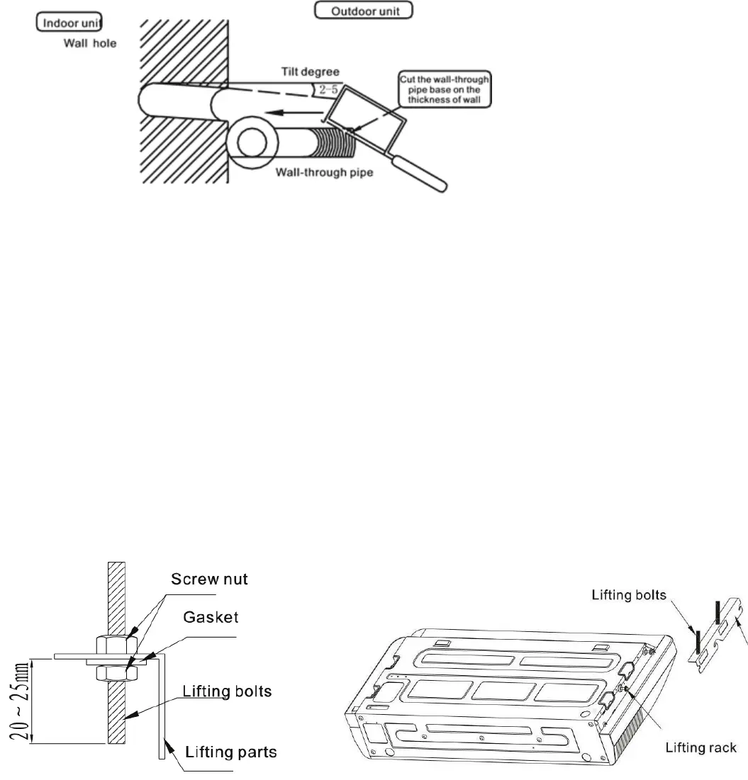 • Lift the indoor unit into place using the necessary lifting equipment.