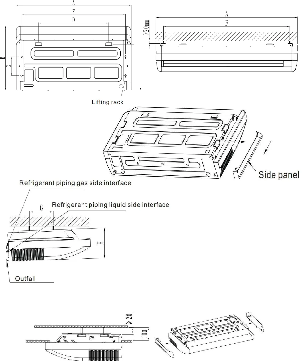 remove the left and right panels of the indoor unit and then embed half of the unit body into the