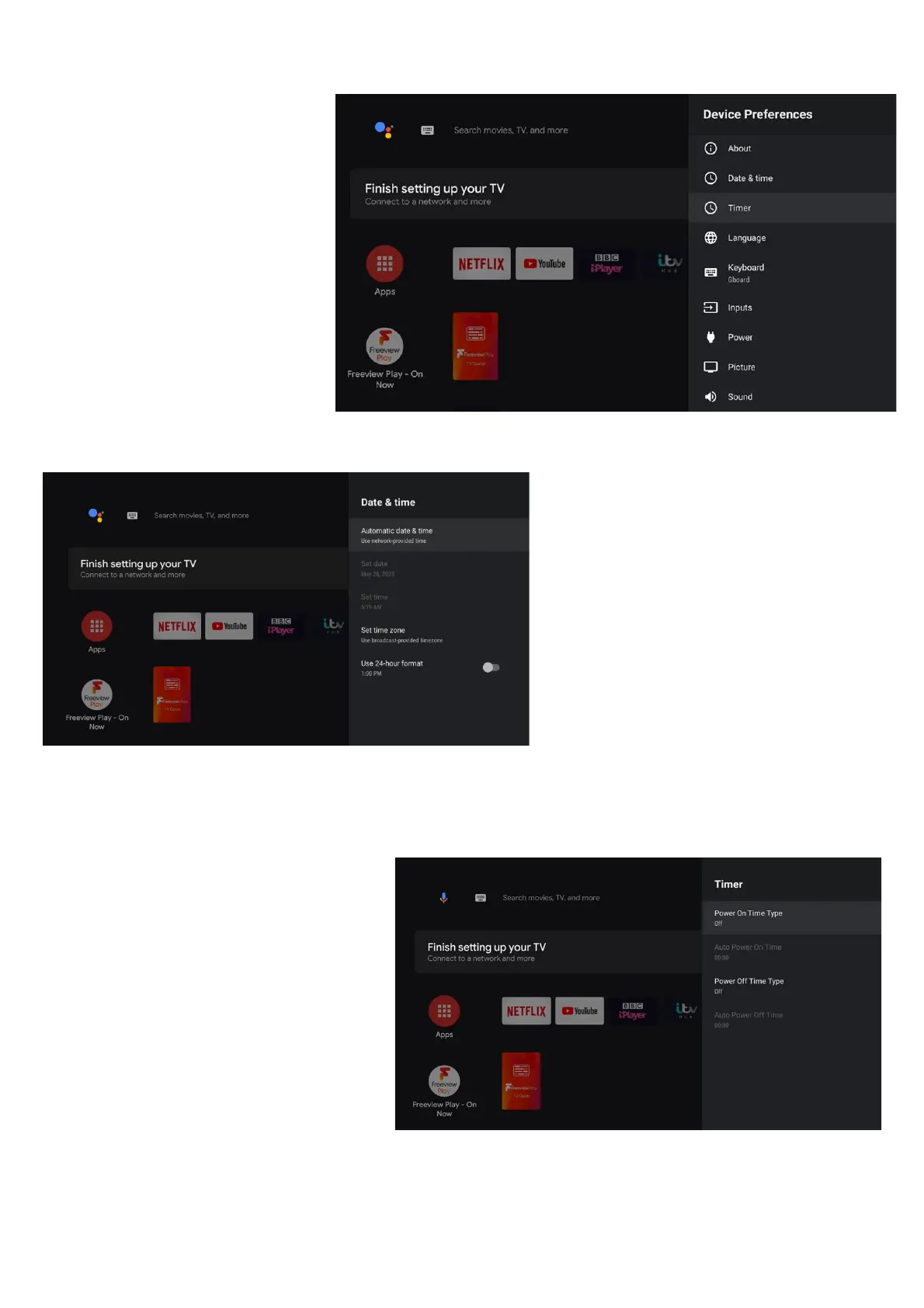 Power on time – Turn on the function that enables the television to turn on by itself when in