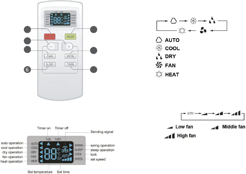 FAN – Only the fan will run in this mode. Use to circulate air around the room.
