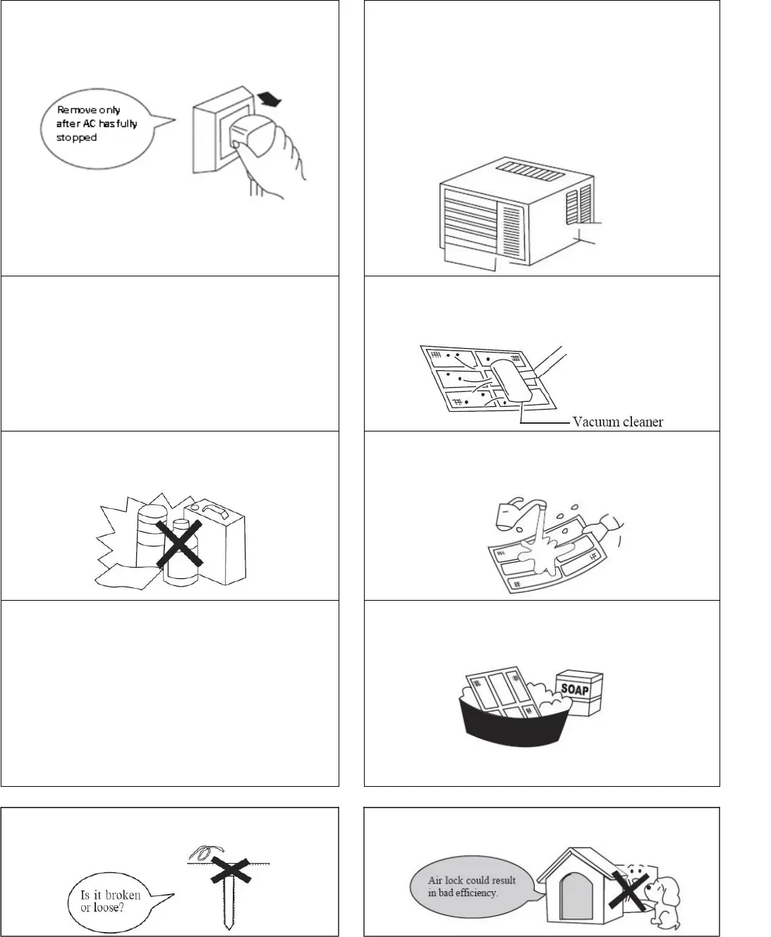 Always turn off the air conditioner and main power supply before cleaning to ensure safety.