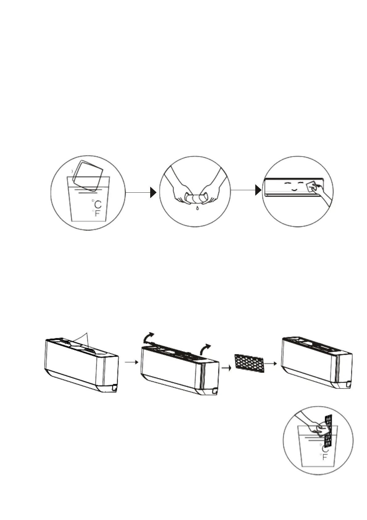 • After removing the filter screen, do not touch the fins of the indoor unit, as these can be sharp.