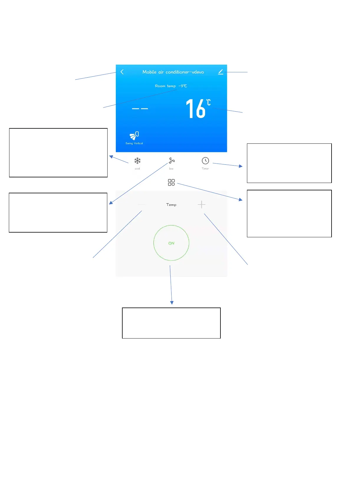 The device screen is the main control screen for the air conditioner, providing access to the controls to amend