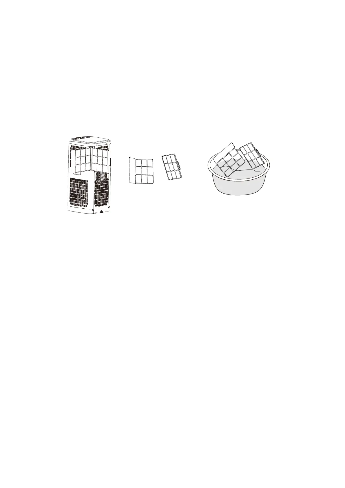 The evaporator filter screen can be cleaned in warm water with neutral detergent (about 40℃ /104℉). It must be