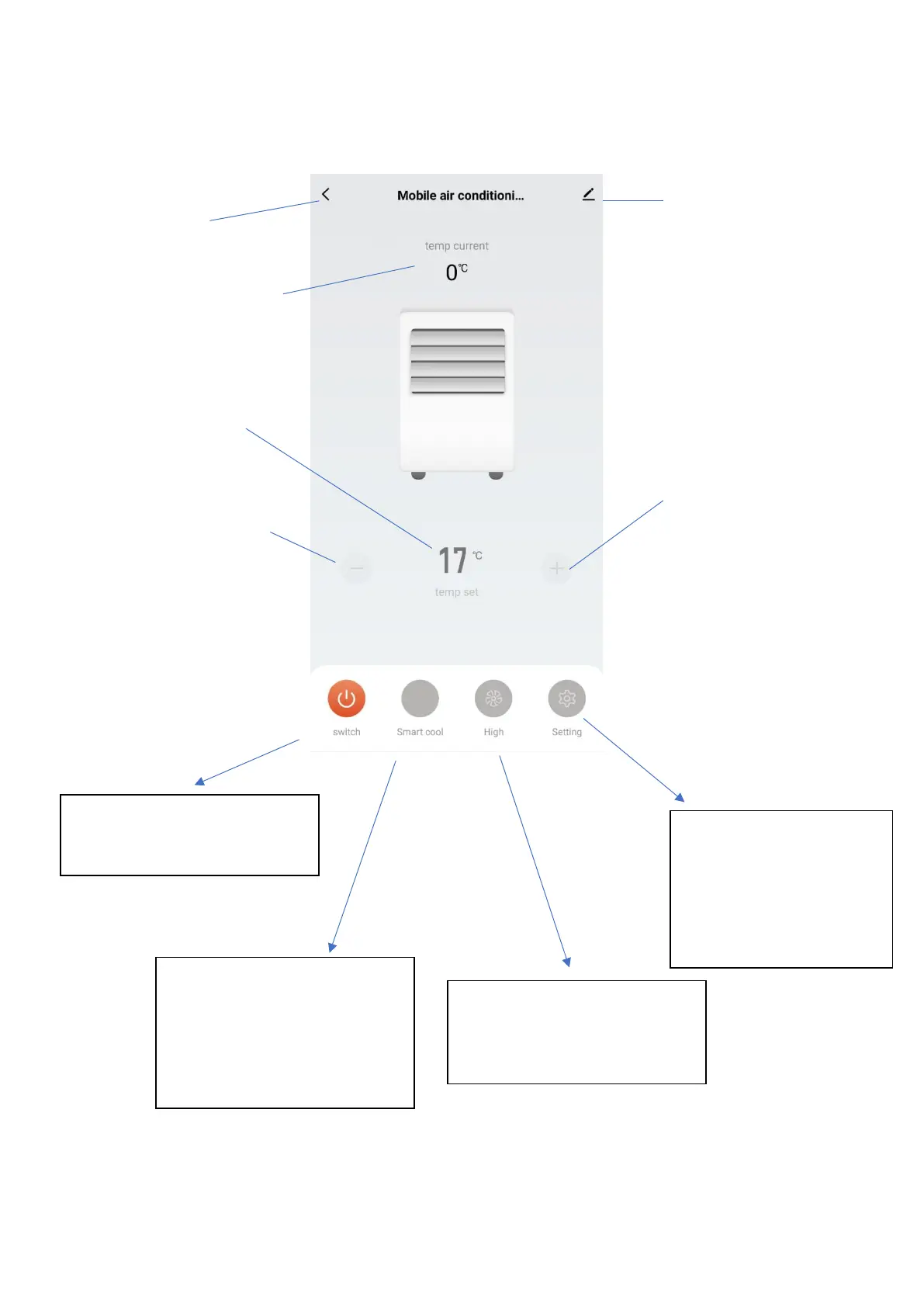 The device screen is the main control screen for the air conditioner, providing access to the controls