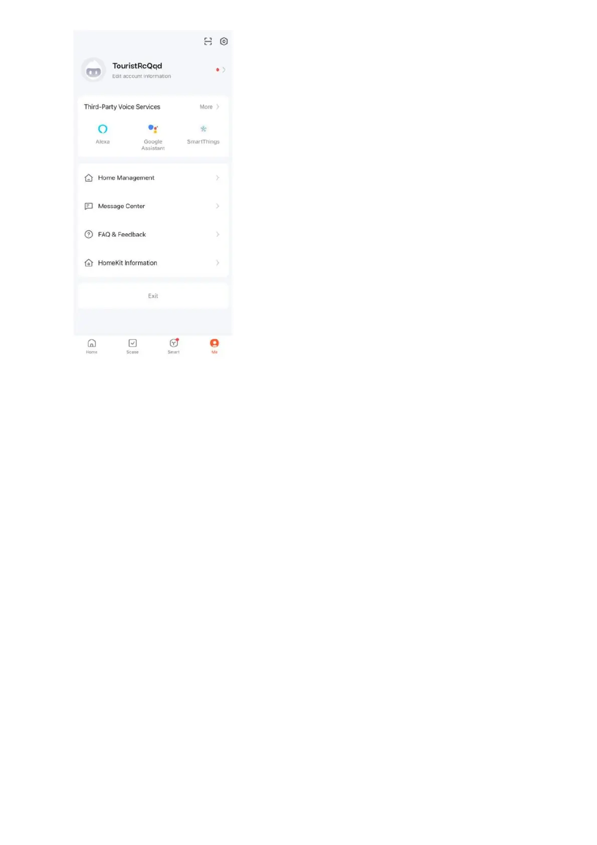 TUYA account, giving options such as adding a home,