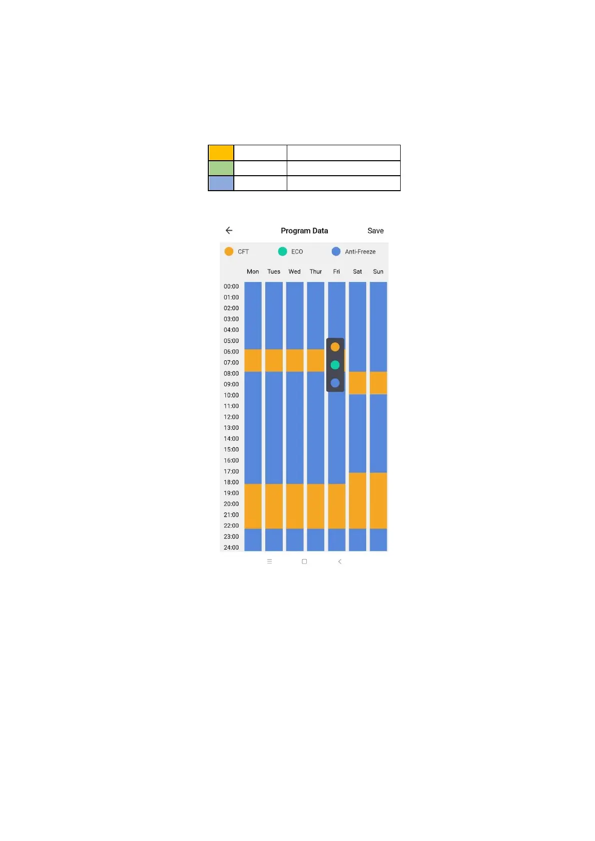 change a timeslot, press on it, and then choose the mode you want to operate for that hour