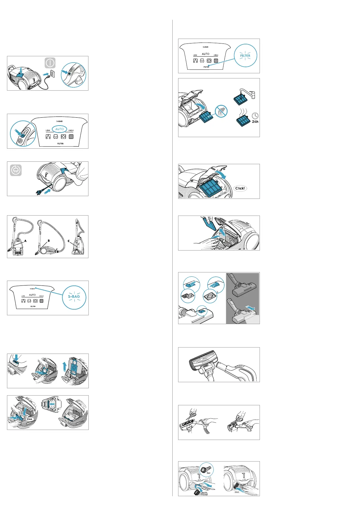 Pozn.: Prachový sáček s-bag měňte vždy, kdy svítí kontrolka S-BAG nebo když