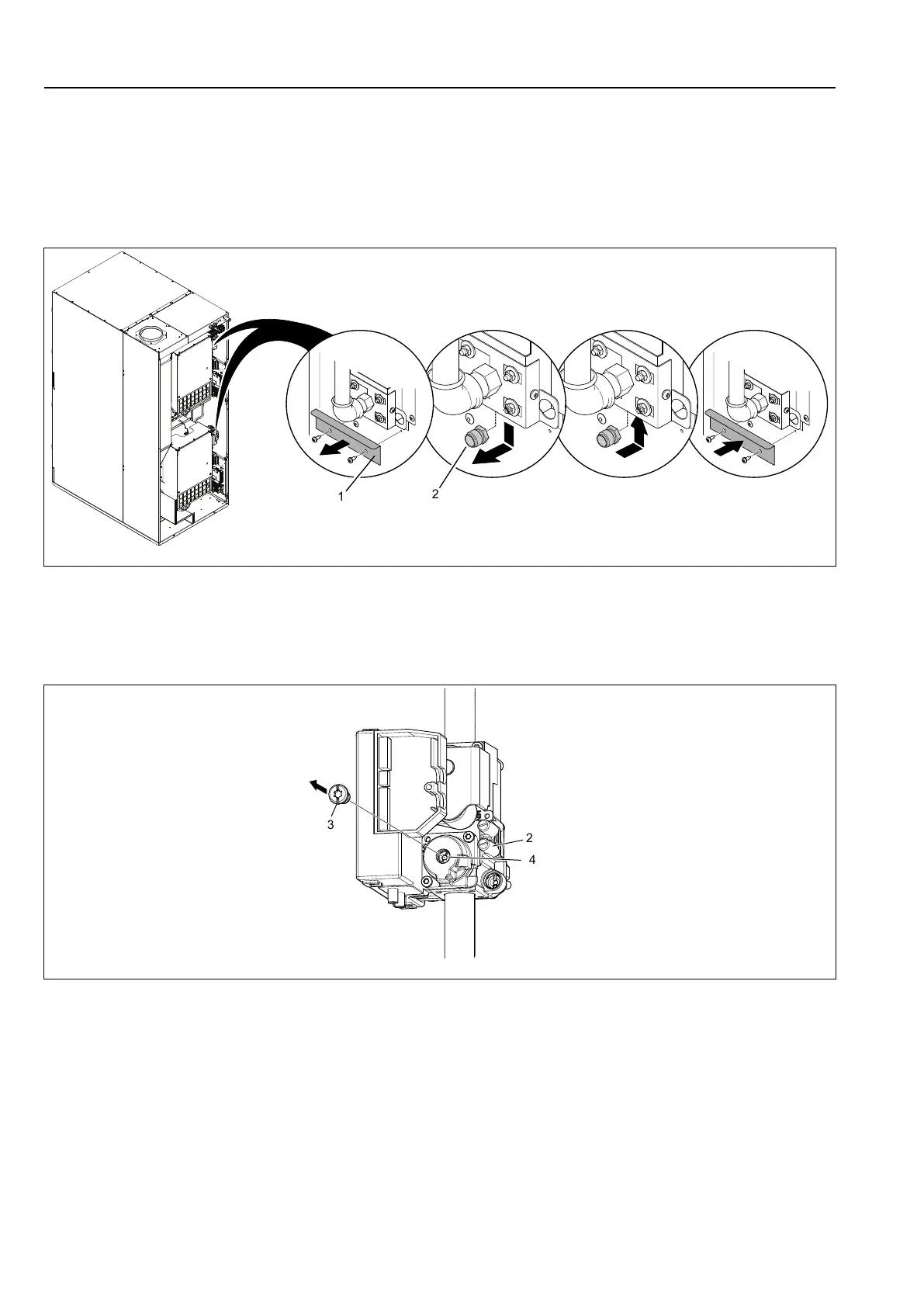 • Loosen the measuring branch screw (2) 1/4 turn; connect a manometer to the measuring branch.