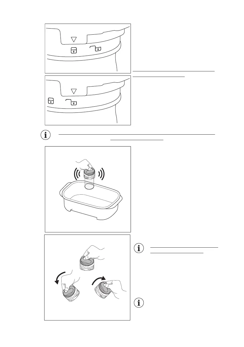 Filtrační vložku vyčistěte a její obsah odstraňte postupem znázorněným