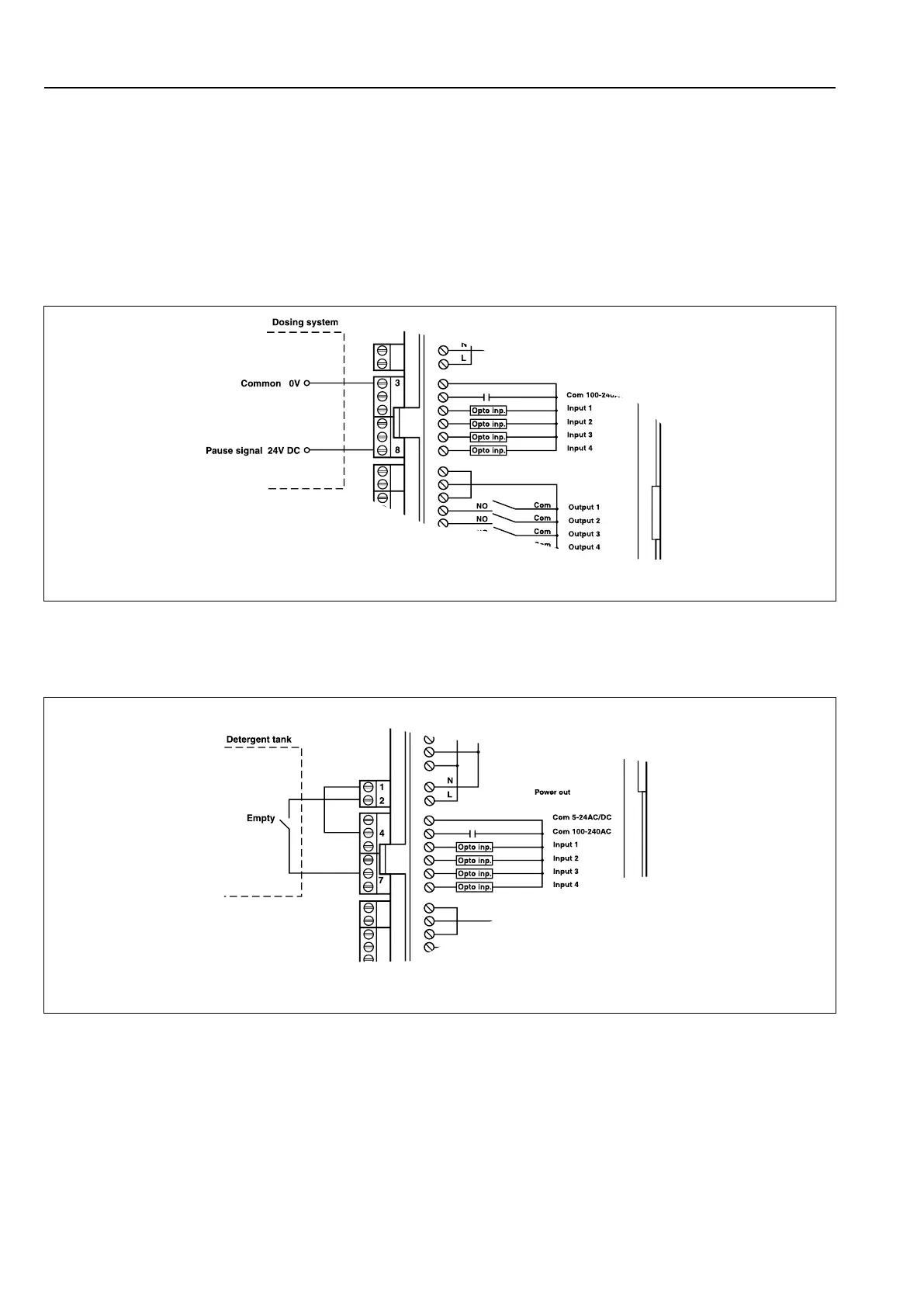 Connection 7. If this is connected, an error message will be displayed if any of the chemical tanks are empty. The pro-