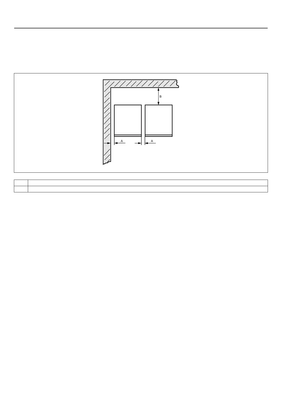 The figure shows minimum distance to a wall and/or other machines. Failure to respect the prescribed distances will