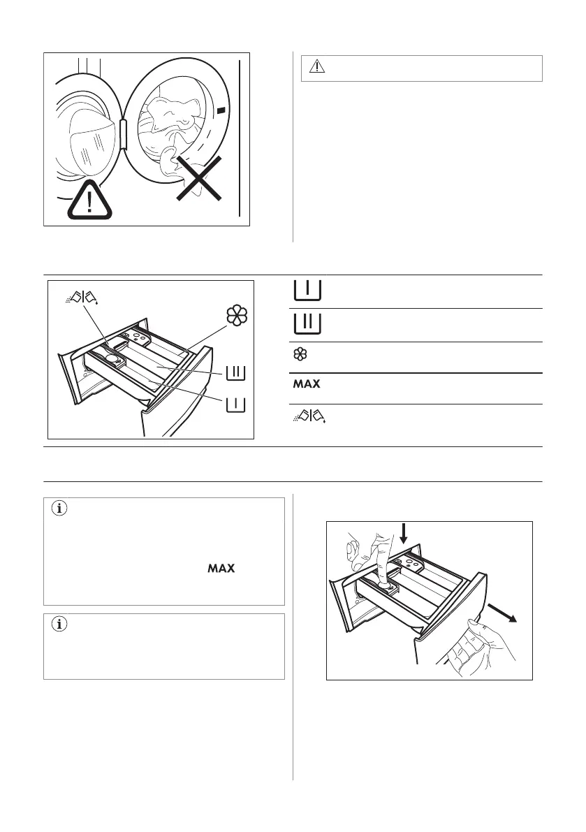 2. Hæld vaskemidlet og skyllemidlet i de dertilhørende rum.