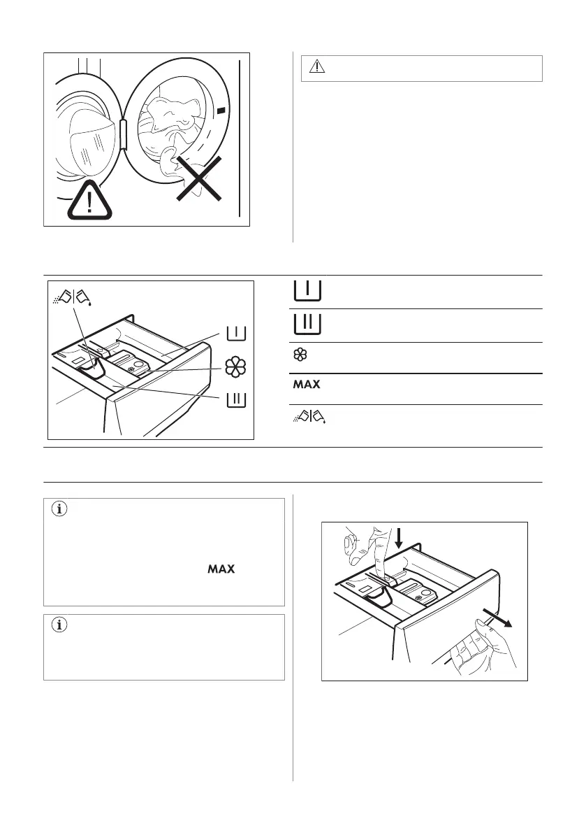 2. Hæld vaskemidlet og skyllemidlet i de dertilhørende rum.