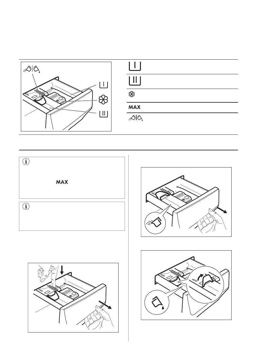 2. Lisää pesuaine ja huuhteluaine oikeisiin lokeroihin.