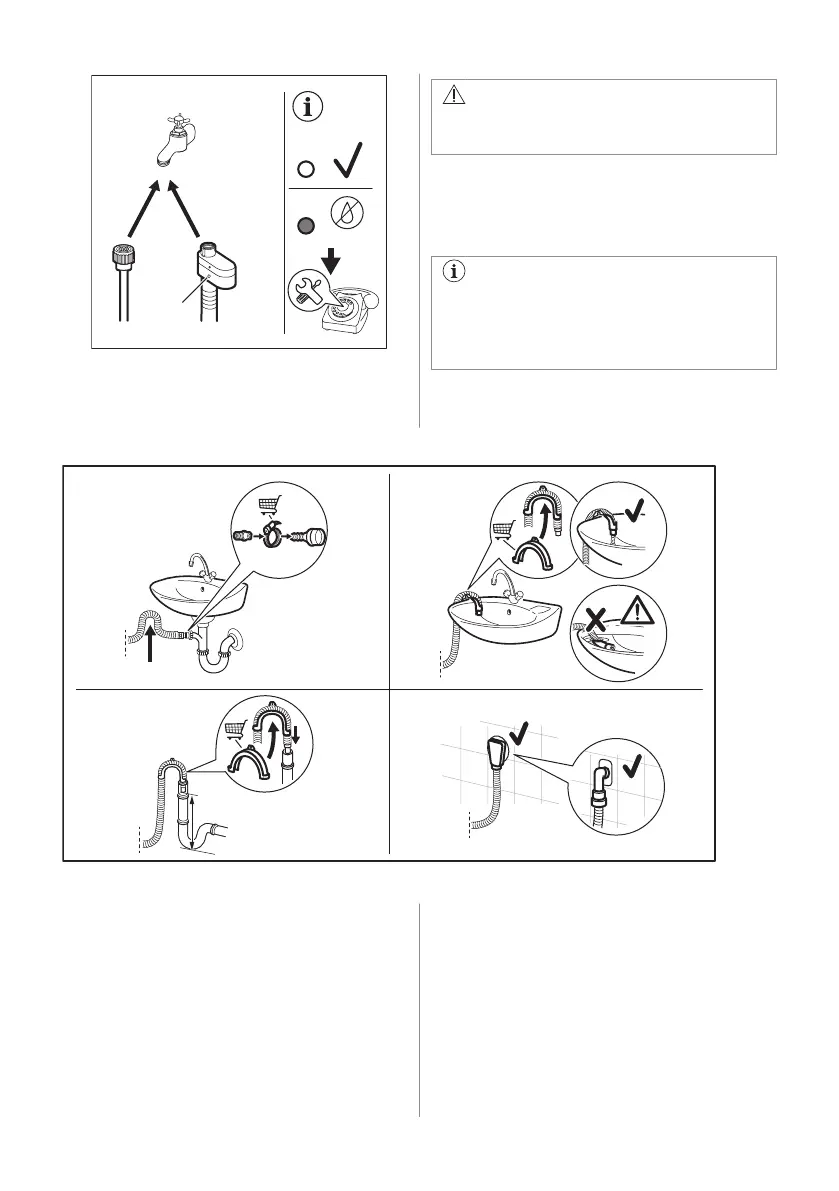 Det er mulig å koble til avløpsslangen på forskjellige måter: