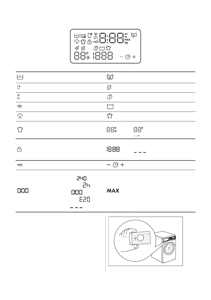 Ånga-indikator. Indikator för inläggning av mer tvätt.