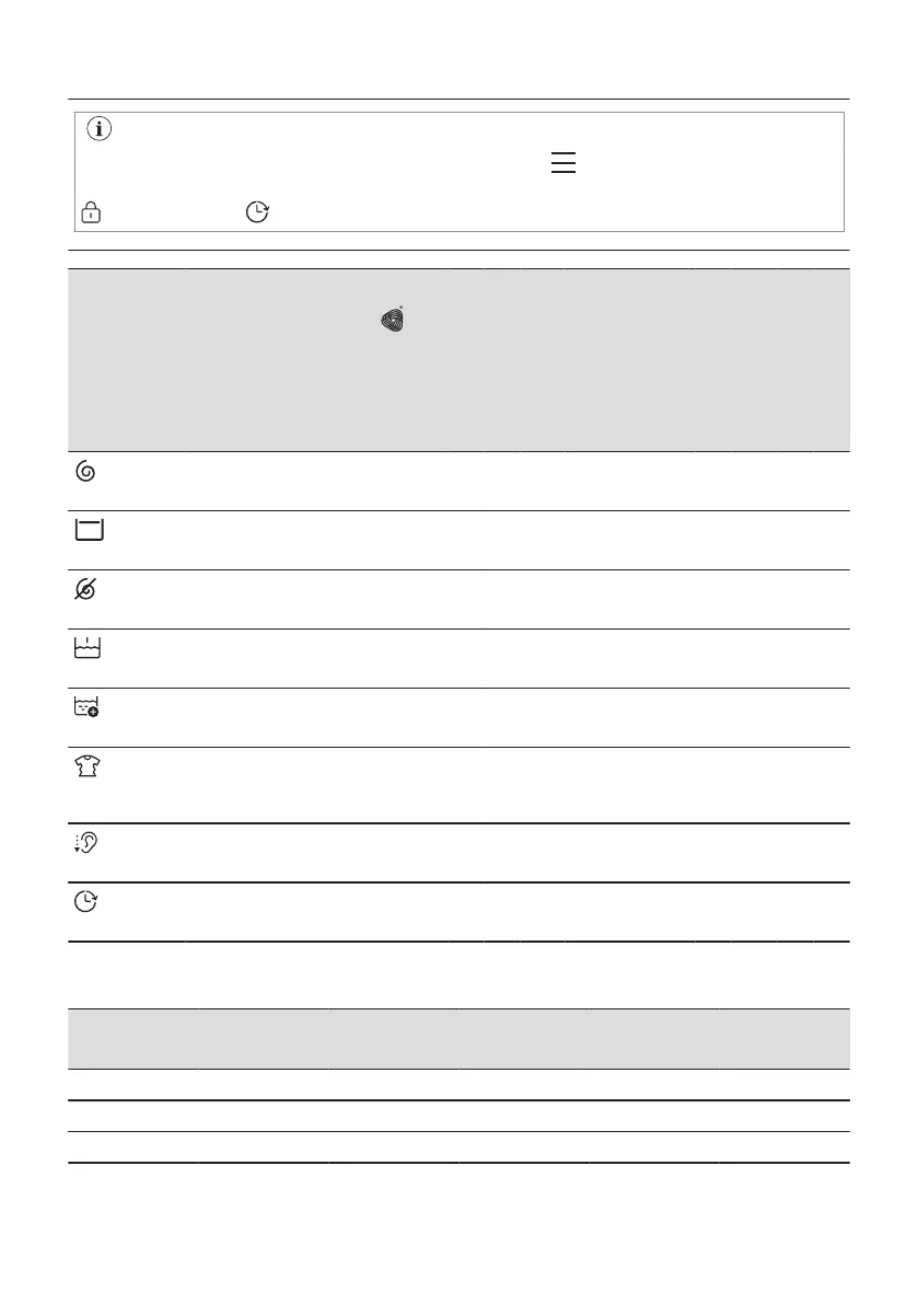 When you set a washing programme and enter the Menu , the display shows the avail‐