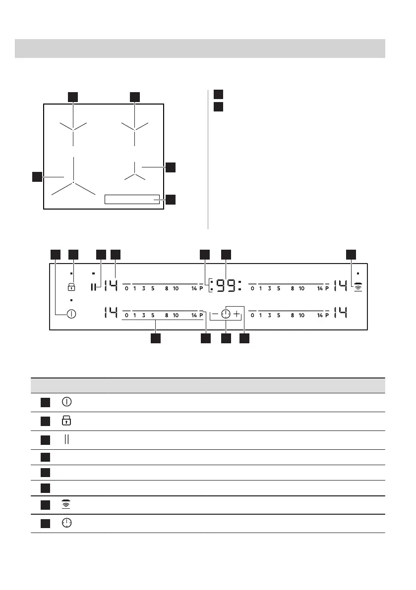 Tænd / Sluk Tænder / slukker for kogesektionen.