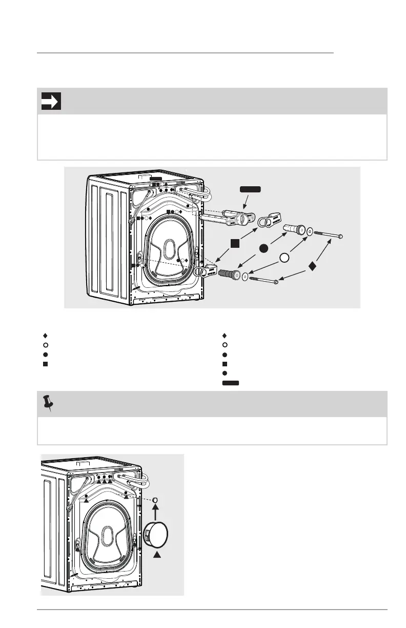 Save all shipping bolts and spacers for future use. If the washer is to be transported at a