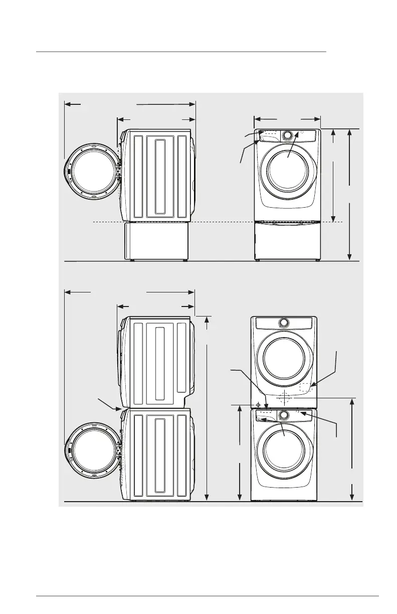 Connection of water inlet hose on steam dryer adds 3/4 in. (2 cm) to installation depth.
