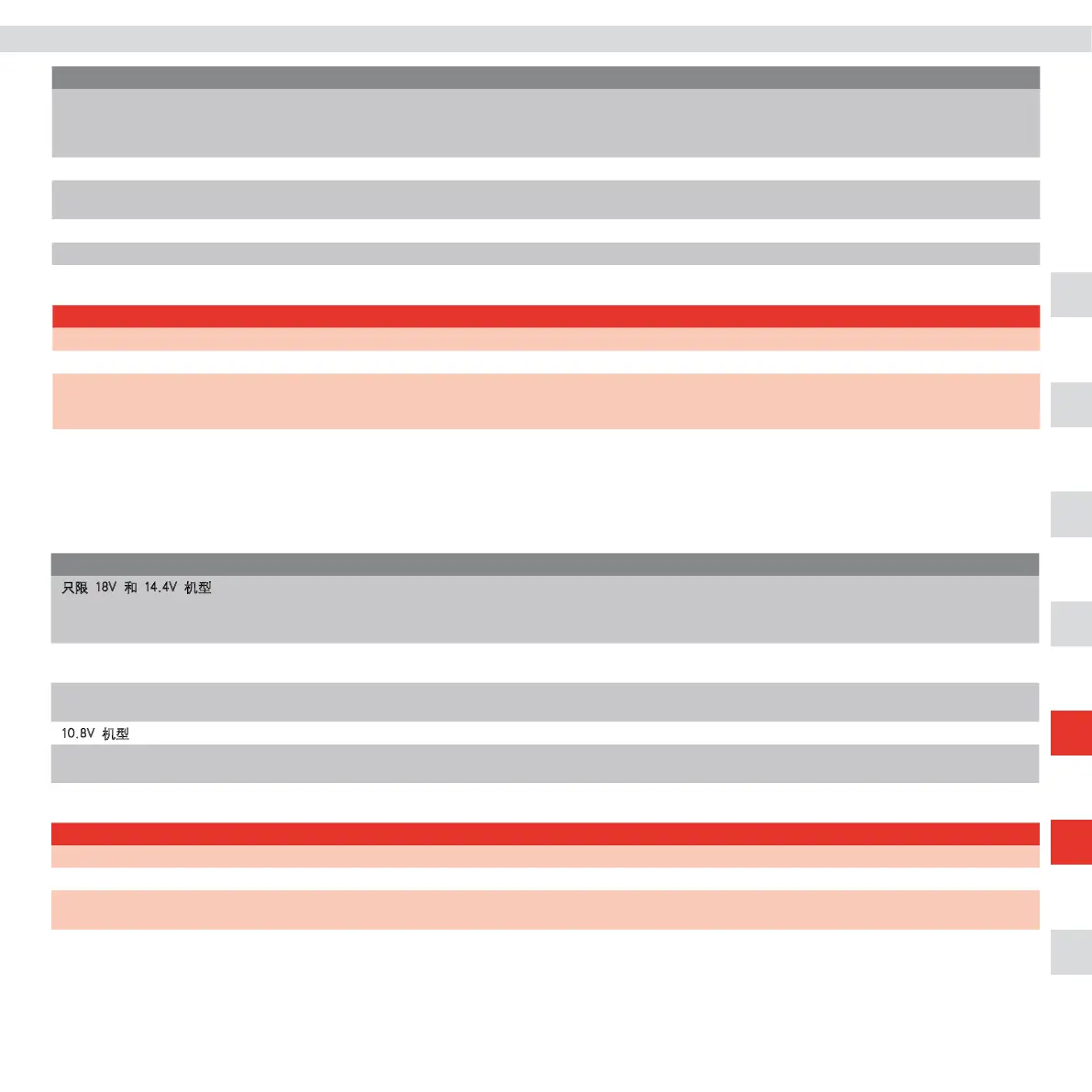 警告灯 - 仅限 14.4V 和 18V 机型