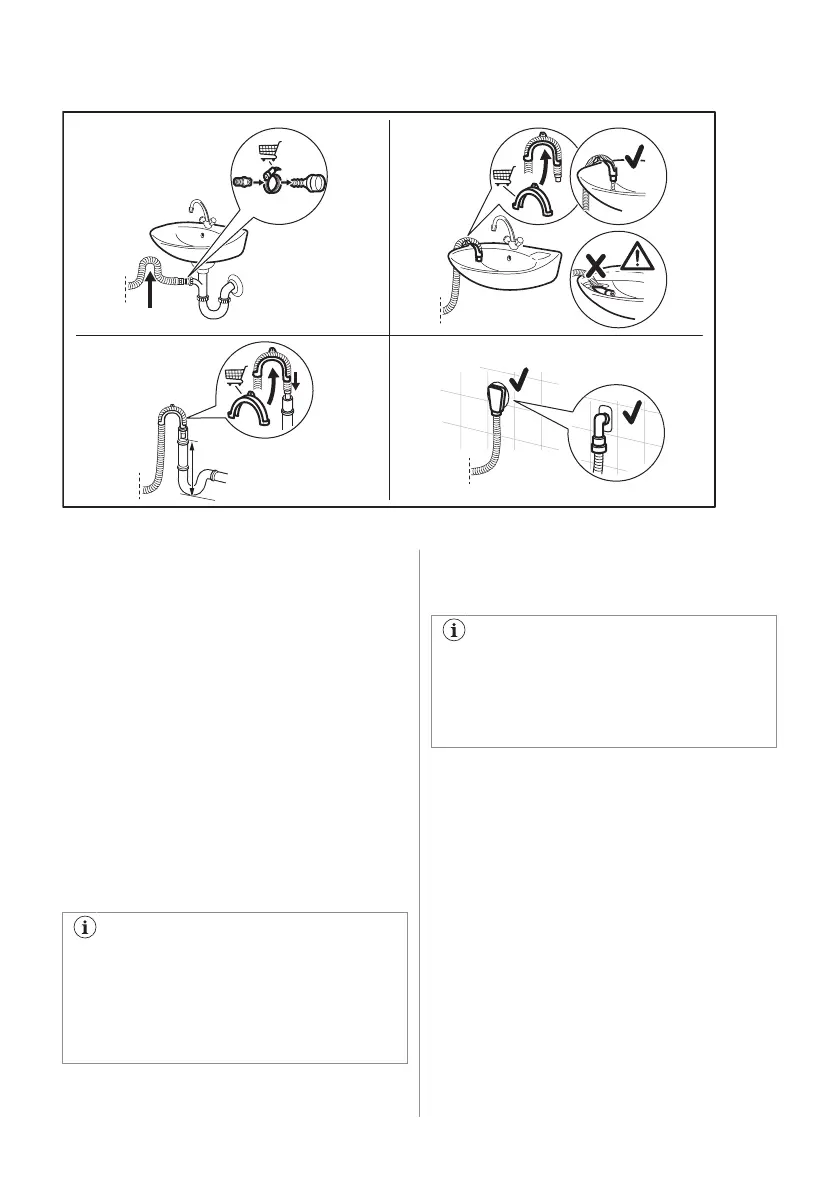 Mögulegt er að tengja tæmingarslönguna á mismunandi vegu: